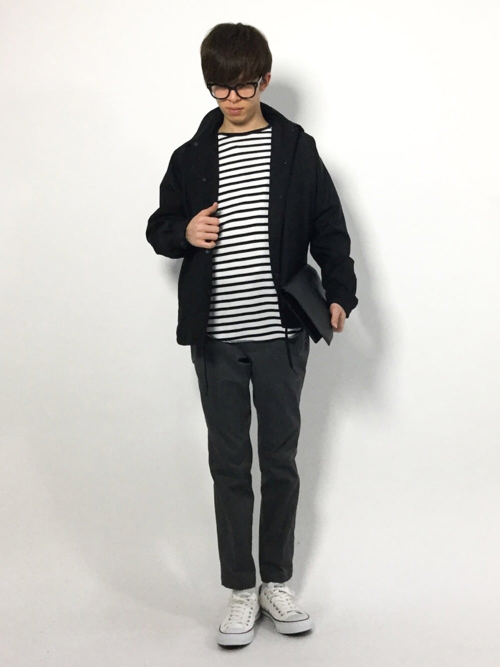 hiroのチノパンツ「BY ストレッチ ノープリーツ テーパード チノパンツ ◆」を使ったコーディネート