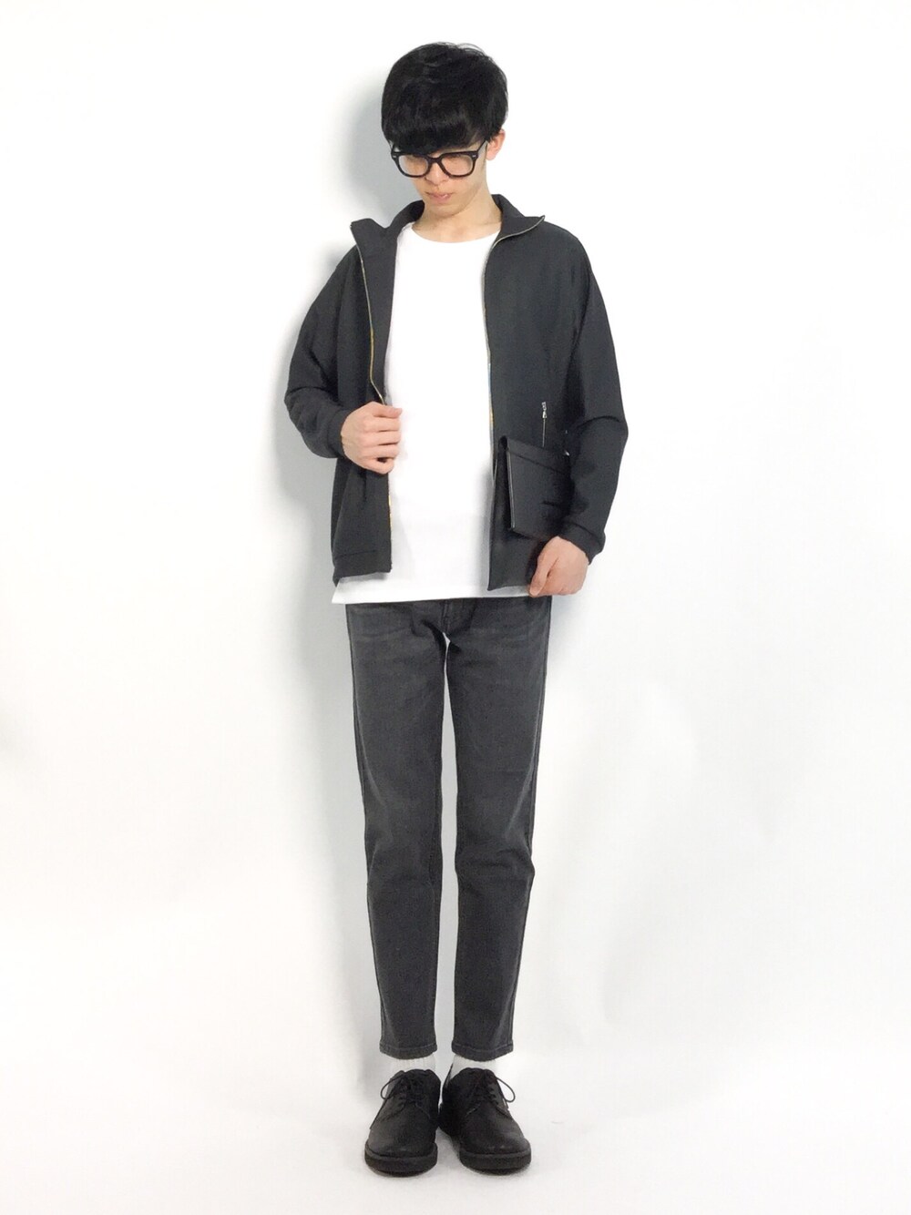 hiroのデニムパンツ「ストレッチブラックデニム5ポケットパンツ#」を使ったコーディネート