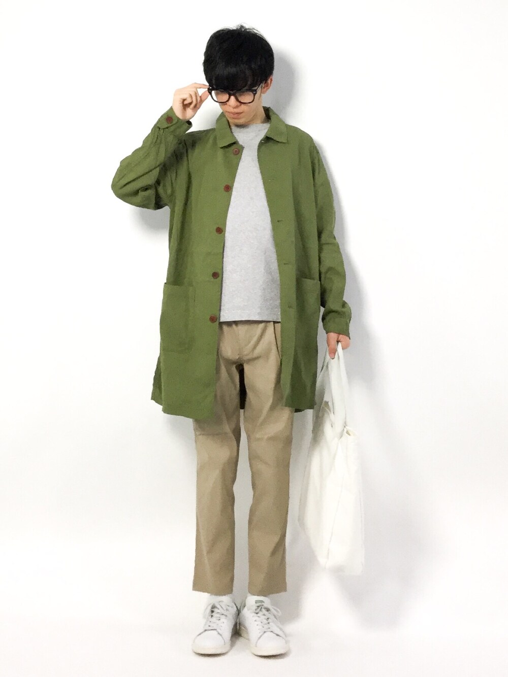 hiroのステンカラーコート「リネンストレッチステンカラーコート」を使ったコーディネート