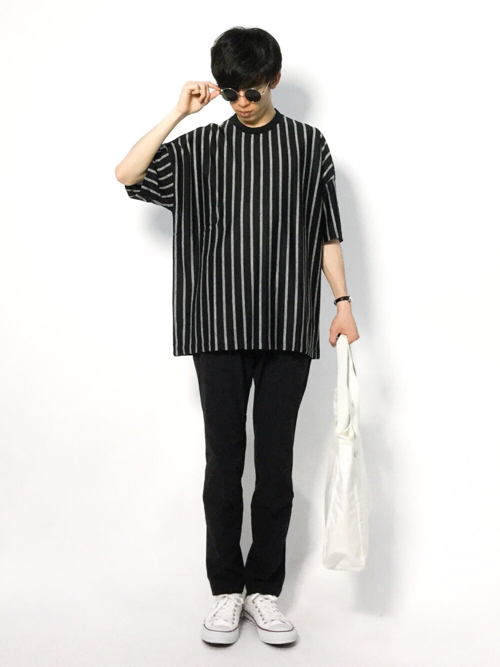 hiroのTシャツ/カットソー「【STUDIOUS】ビッグシルエットストライプTシャツ」を使ったコーディネート