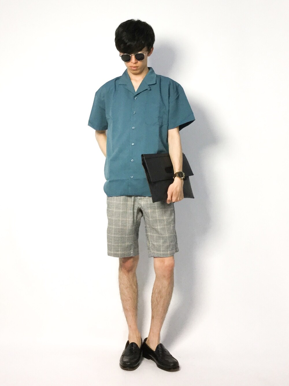 hiroのシャツ/ブラウス「TR素材オープンカラーシャツ/ナノテック加工」を使ったコーディネート