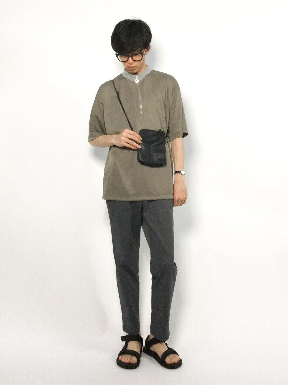 hiroのショルダーバッグ「ネオレザーミニサコッシュ」を使ったコーディネート