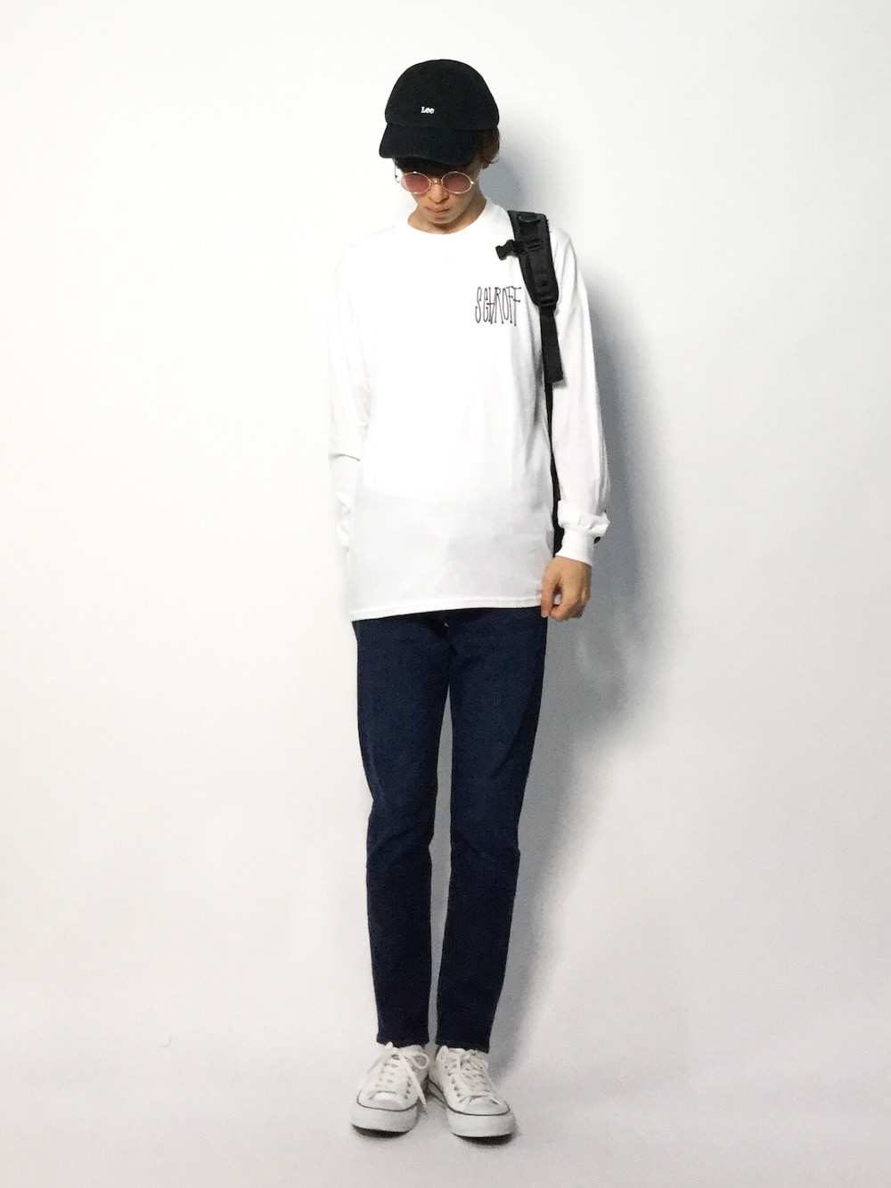hiroのキャップ「WEB限定 Lee×FREAK'S STORE/リー 別注ロゴ刺繍6パネル ローキャップ」を使ったコーディネート