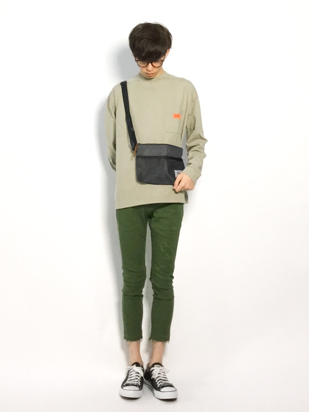 hiroのショルダーバッグ「Rename メッシュポケットナイロンサコッシュバッグ」を使ったコーディネート