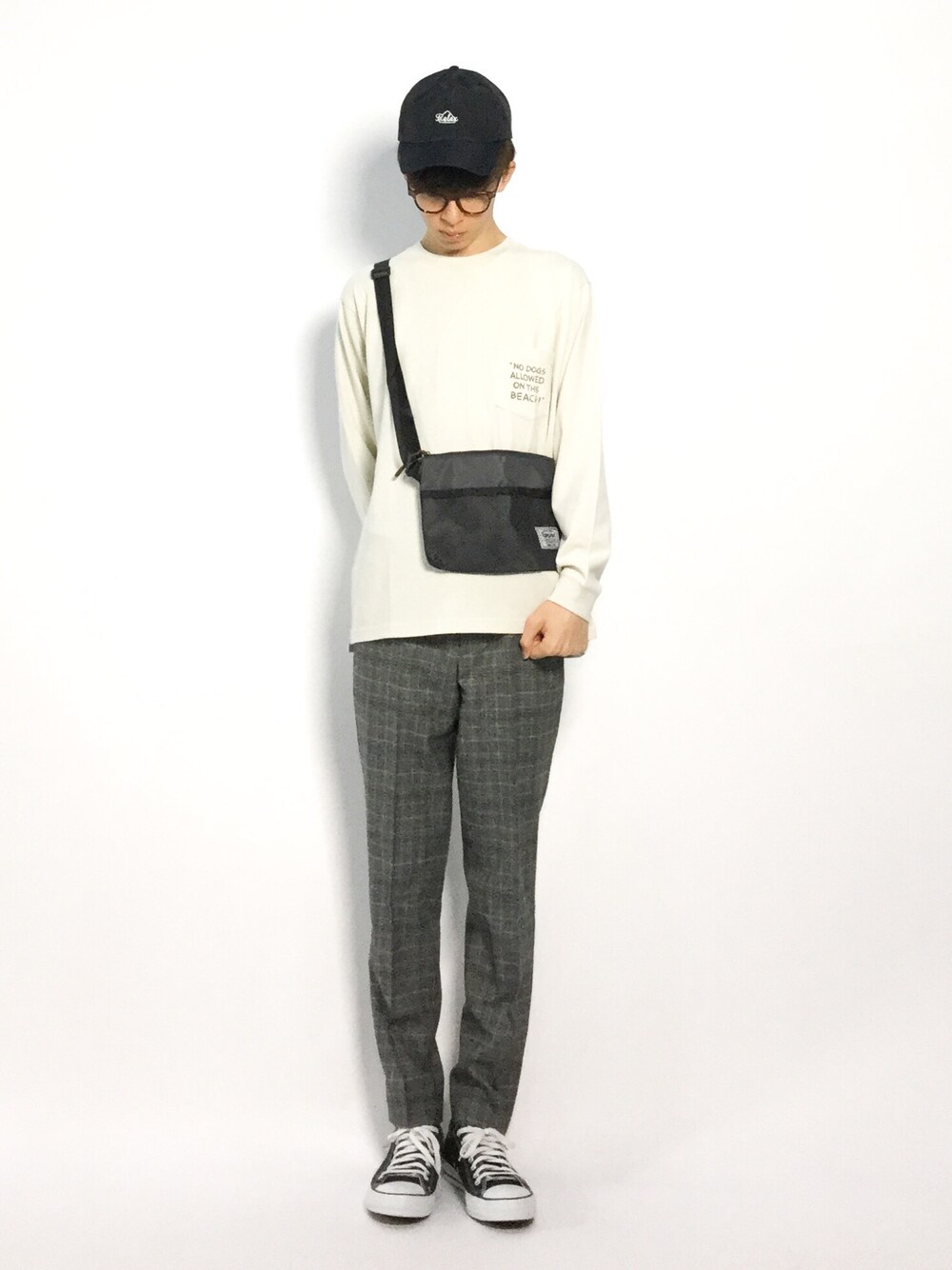 hiroのショルダーバッグ「Rename メッシュポケットナイロンサコッシュバッグ」を使ったコーディネート