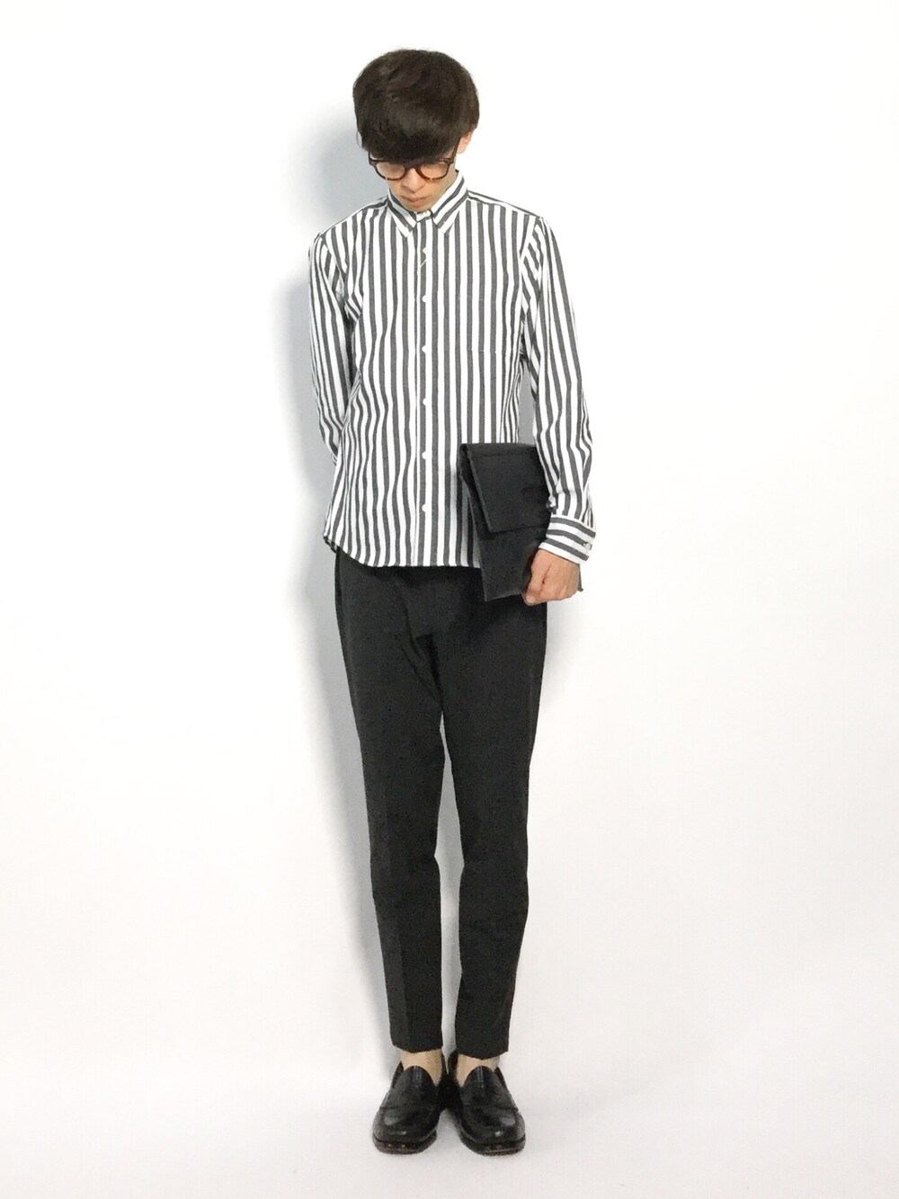 hiroのシャツ/ブラウス「ストライプ BD シャツ/ボタンダウン長袖シャツ」を使ったコーディネート