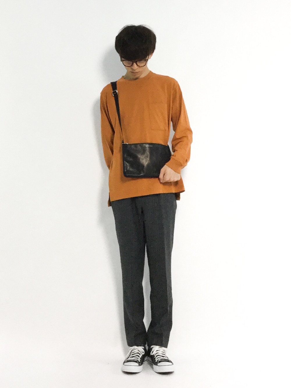hiroのショルダーバッグ「【NUMBER (N)INE】≪WEB限定≫別注ハイグレードレザーサコッシュ/ショルダーバッグ」を使ったコーディネート