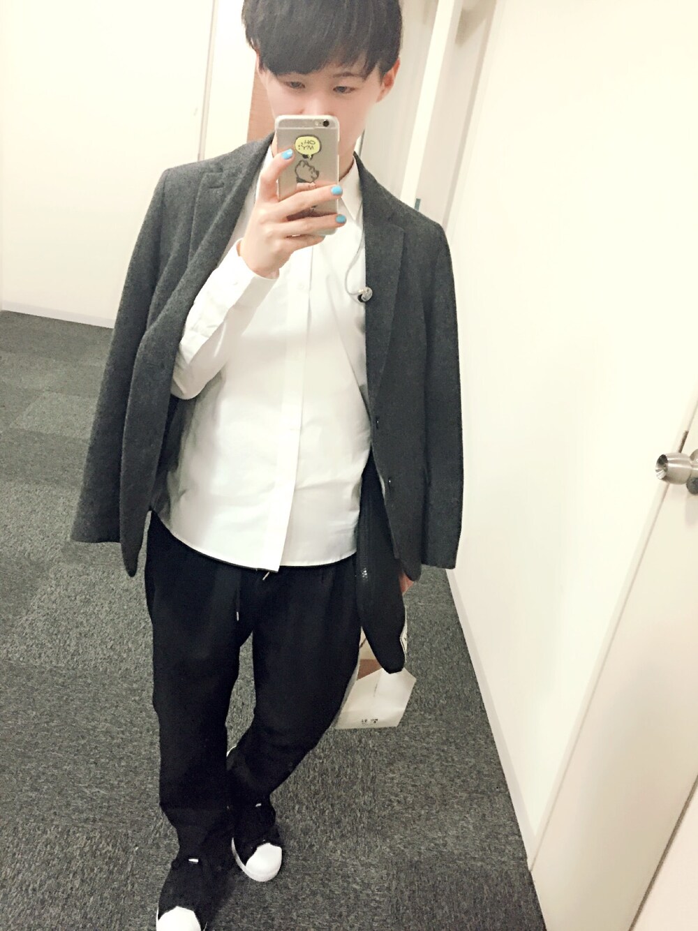 shirt #STUDIOS jacket #BEAUTY&YOUTH UNITED ARROWS pants #monkey time shoes #adidas bag #Henschel 白黒コーデ? 首回りが寂しい気がする… ネイルで色入れてみた^ ^