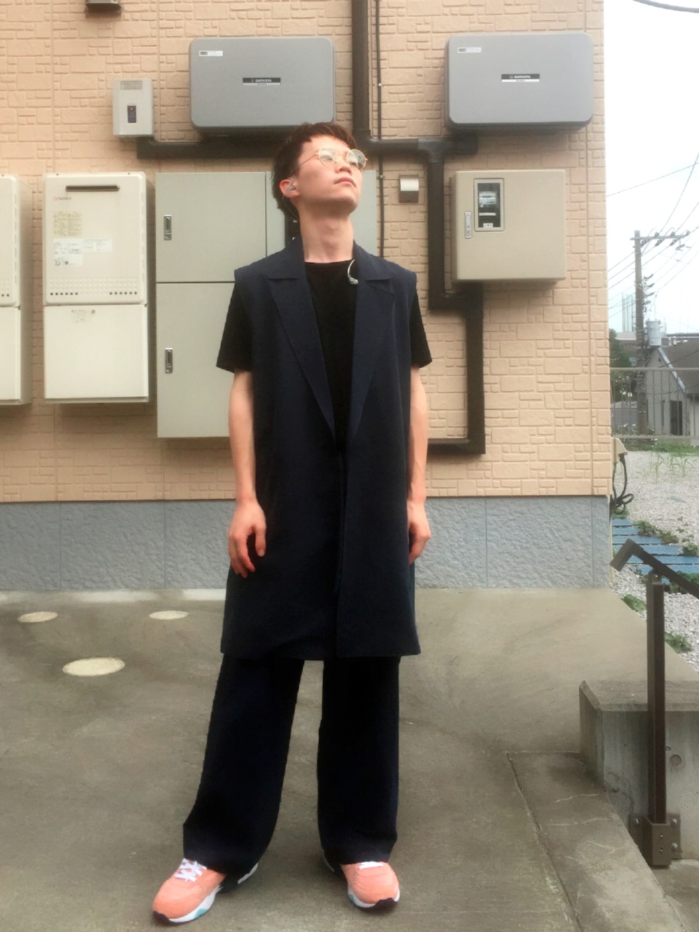 ヒロのテーラードジャケット「Lui's(ルイス) ノースリーブジャケット」を使ったコーディネート