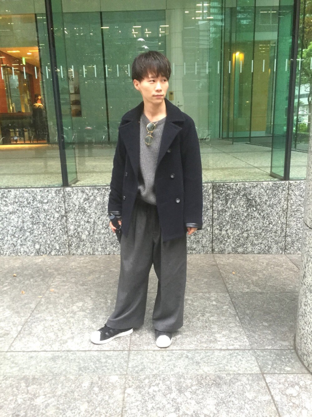 今回はビックシルエットを意識しました。 靴とコートをブラックとネイビーにして全体をまとめました。 knit #Lui's coat #BEAUTY&YOUTH UNITED ARROWS pants #Lui's×ETHOSENS glass #A.D.S.R