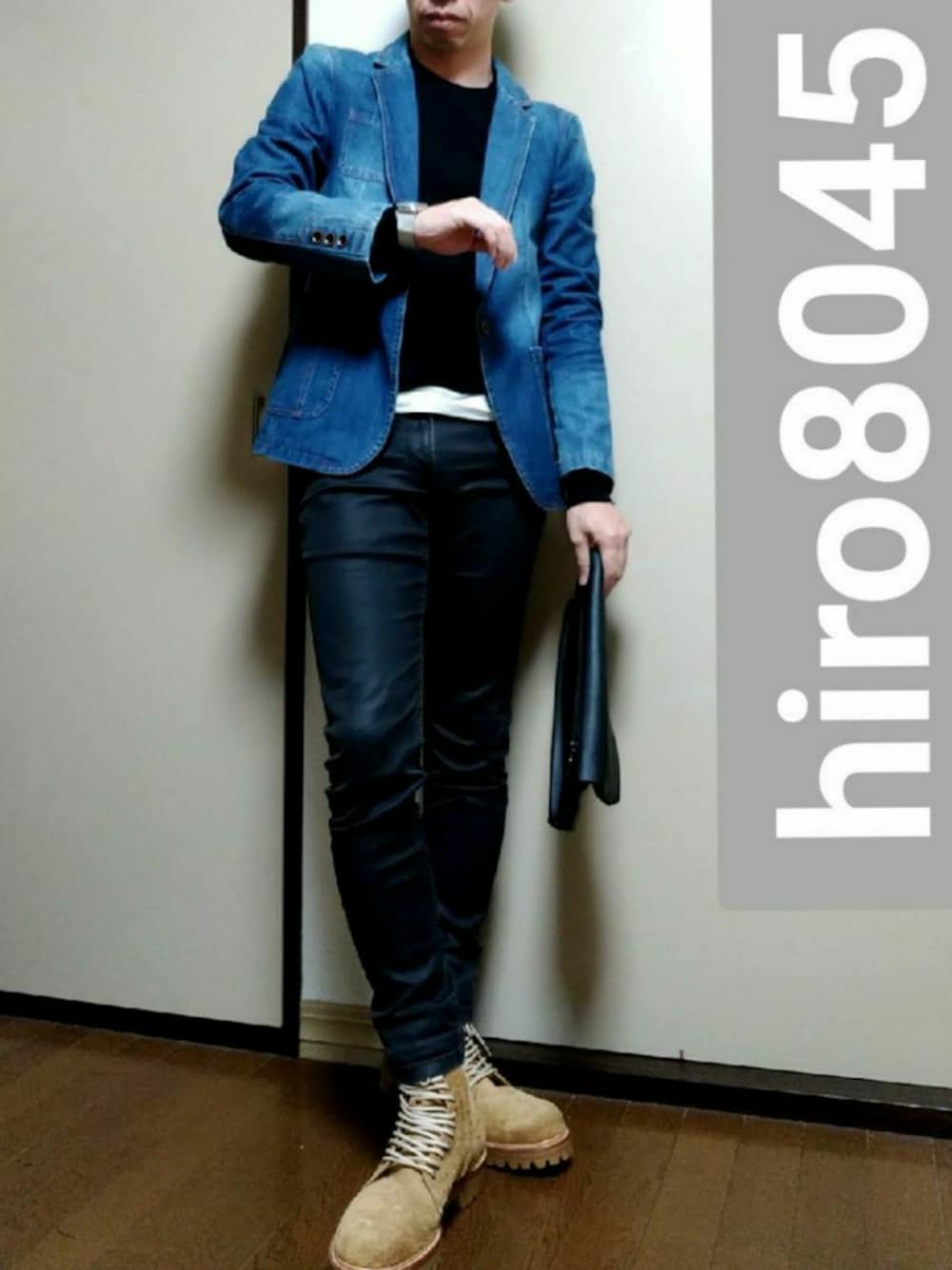 デニムジャケットと ブーツの色合わせが 好みなんです。