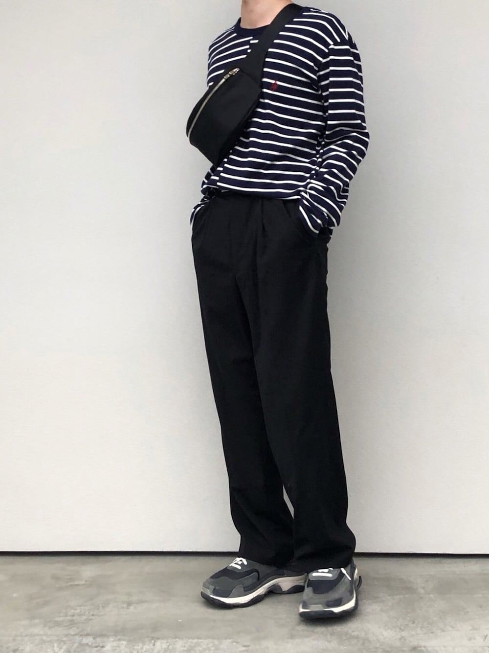 Tops...J.W ANDERSON × UNIQLO Bottoms...factotum Shoes...BALENCIAGA Bag...KAIKO