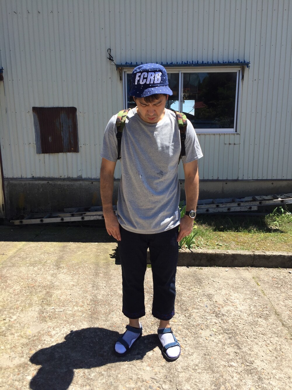 いつもSAVE、イイねありがとうございます✨ 今日は暑日差しも強く、ブリストルのハットとパープルレーベルのリュック、ホワイトマウンテニアリングのチロリアンパンツ、今季初のテバサンダル、梅雨明けはまだですが、もう夏ですよ💦