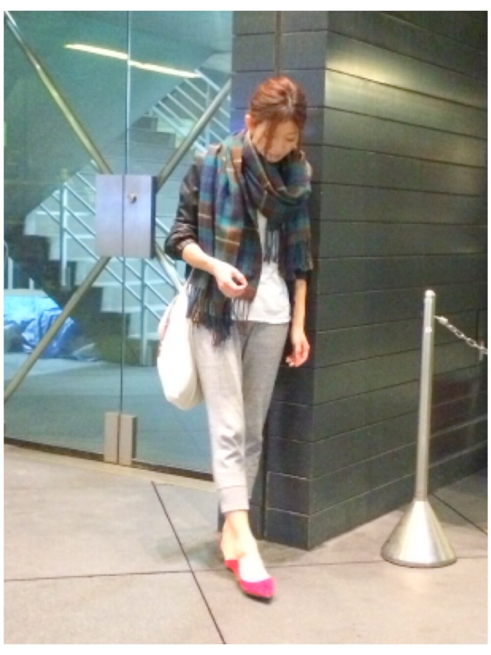 レザーブルゾン*Ray BEAMS スウェットパンツ*UNIQLO ストール*ブランド不明