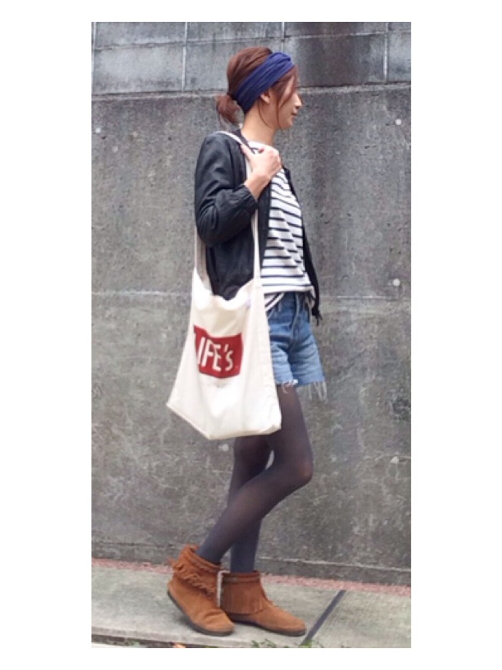 ボーダーT*UNIQLO ターバン*ROSE BUD 靴*ミネトンカ ⑅◡̈*