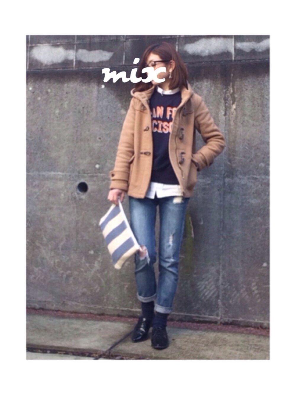 ダッフルコート*global work スウェット*ROSE BUD シャツ*gu デニム*zara ˙ᵕ˙♡