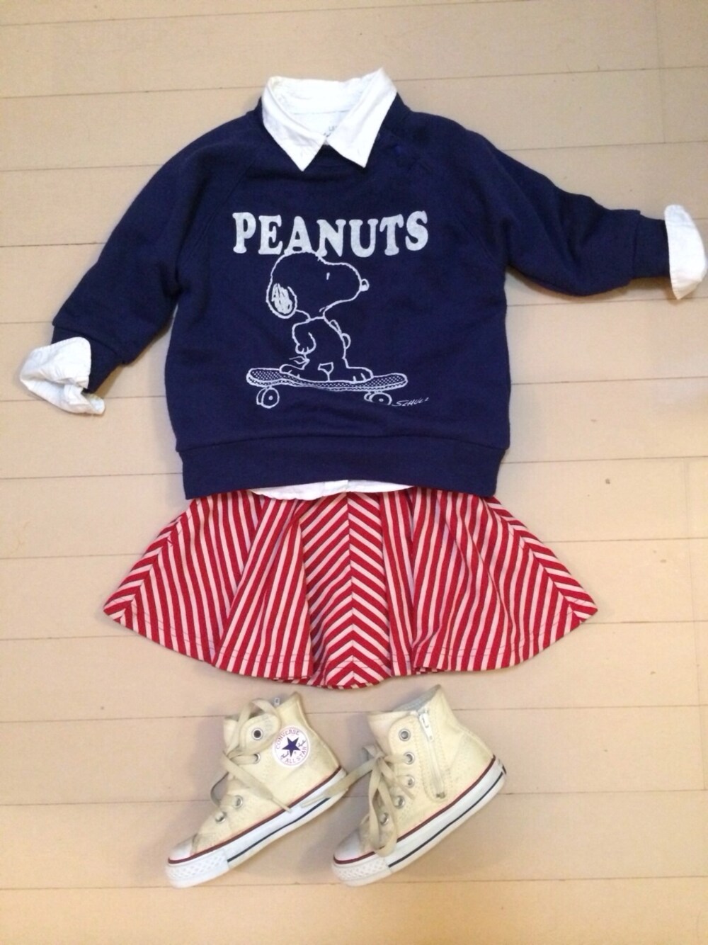 次女さんコーデ** シャツ*gap シューズ*コンバース ¨̮⑅
