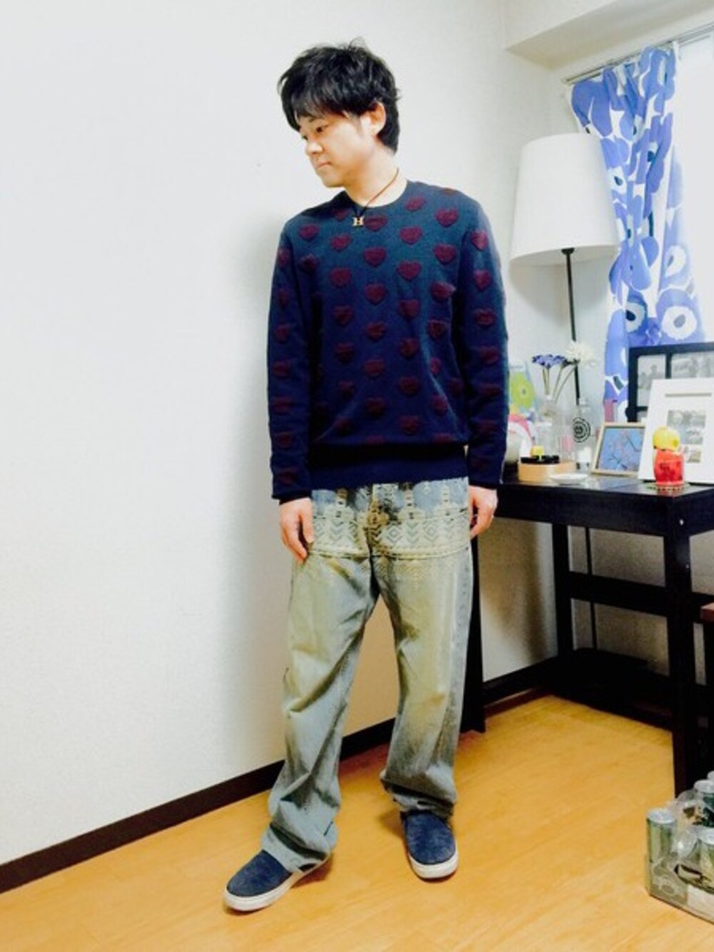アクネのハート総柄ニット たけしニットでしょ!?(笑) イロコイのジーンズは、はき心地最高〜!