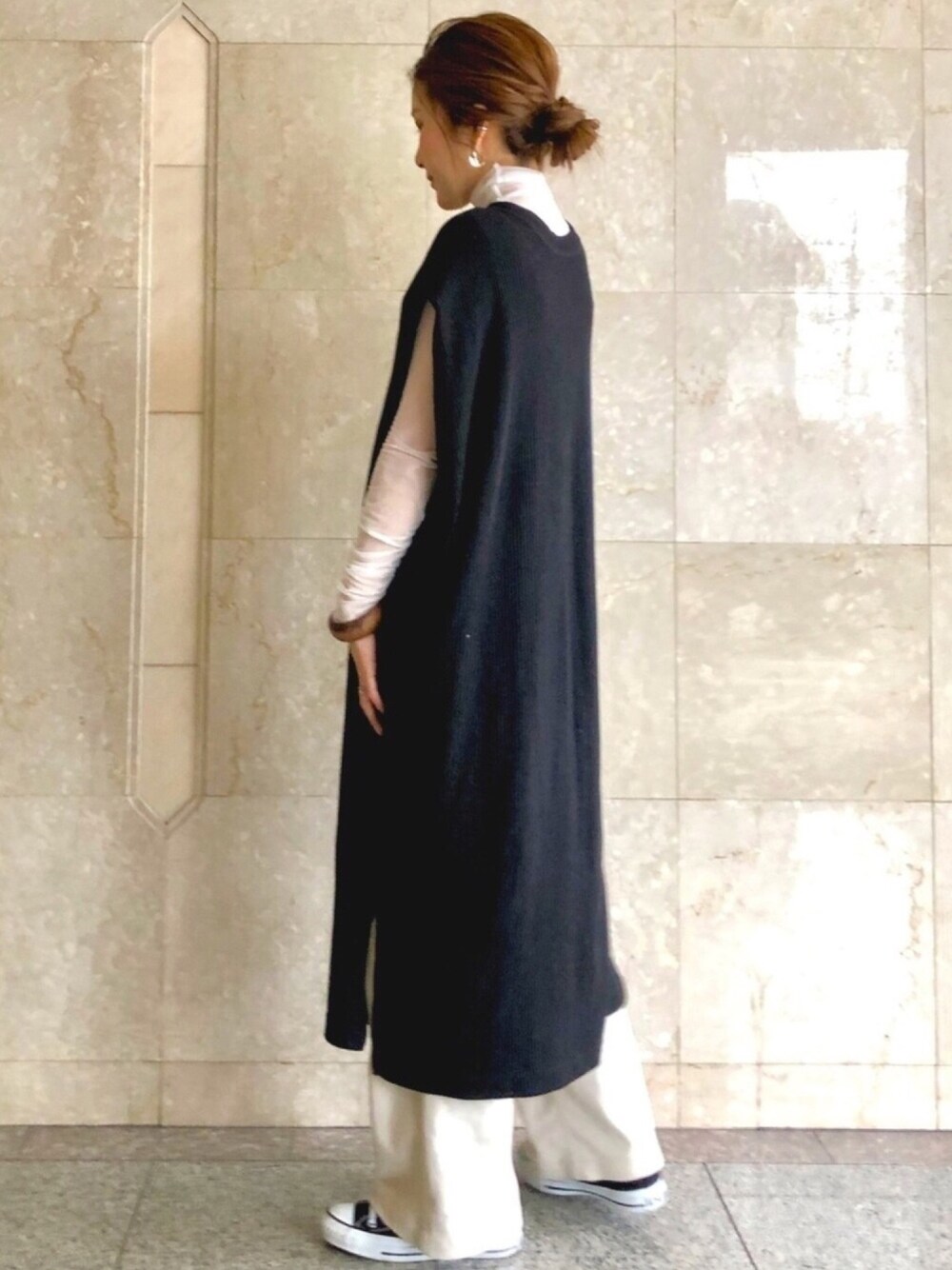ご覧頂きありがとうございます😊🌿 ロング丈のワンピースに ワイドパンツをレイヤードすると 背が高くみえますよね?🦩💓 大人女子感💃