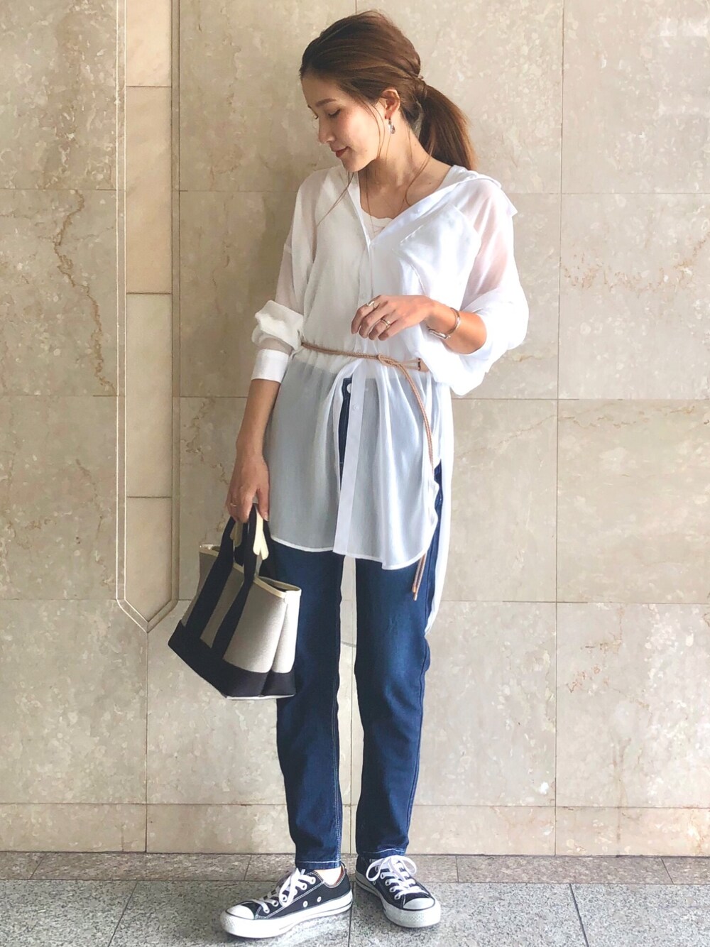 ご覧頂きありがとうございます😊✨ 昨日に引き続き シアーコーデです🧚🏻♀️ この時期でも肌寒い日は、 こうゆう羽織りがあると ちょうどいい😇 デニムはお気に入りの coolテーパードで👖❤️