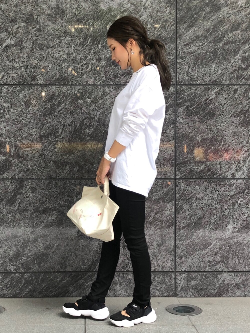 ご覧頂きありがとうございます😊🖤 #モノトーンコーデ🤍🖤 雨で少し肌寒かったのでロンTチョイス👆 ブラックデニムは 大人気"ハタラクロ"です☺️✨ ママさんや働く皆様の味方です❤️ 履き心地良すぎて家の中でも ずっと穿いて居られます💁♀️✨ さぁ今日は金曜日❤️ 夕方からは少し娘達と ショッピングの約束です😘