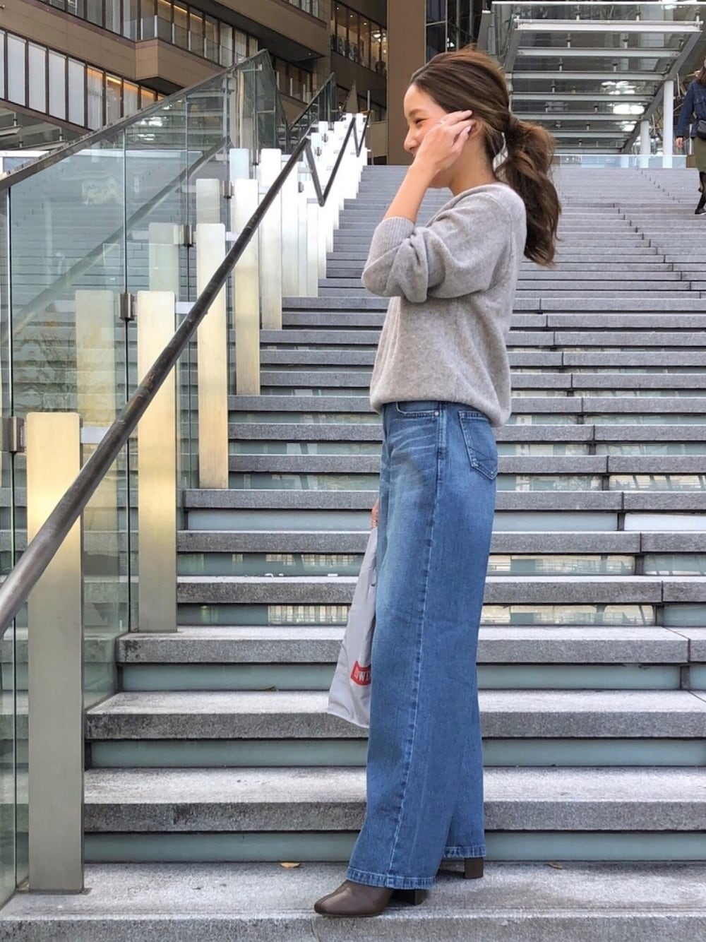 ご覧頂きありがとうございます💕 朝から何かにウケております👯♀️ 最近ピタピタスキニーが多かったので シルエットも色味も変えてみました😊👖 お人形のドレスのようなシルエットが 特徴的なスーパーフレアデニムです🥰✨ バックポケットが小さめで 位置も高めに付けてあるので 脚長効果🦵バツグンなやつです🙆♀️❤️