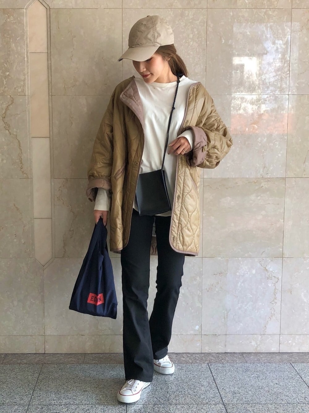 ご覧頂きありがとうございます☺️❤️ #休日コーデ❄️ #公園コーデ⚽️ らくちんなコーデ大好き人間💁♀️ 大人気ハタラクロから 新シルエットの ブーツカットです🖤🖤🖤 美シルエットすぎて ヘビロテ確定😩✨ ライナーコートは ビッグシルエット感が🙆♀️◎