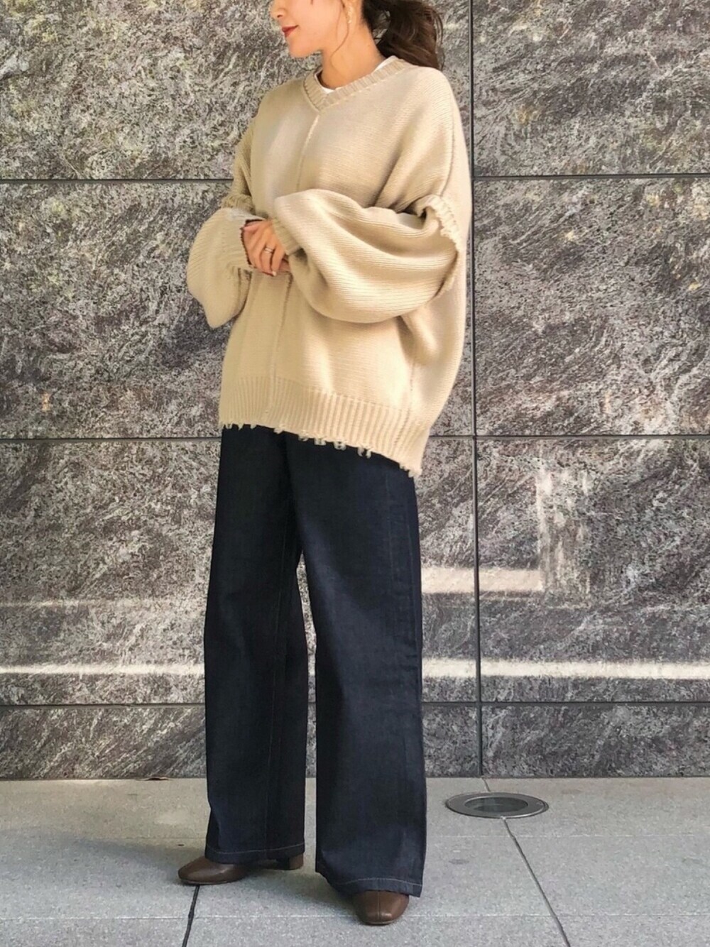 ご覧頂きありがとうございます☺️❤️ ダメージニットに LISAWIDE👖✨ 好きなゆる感が詰まった シンプルコーデ🤎 シンプルだからこそ シルエットがとても大事です☺️❤️