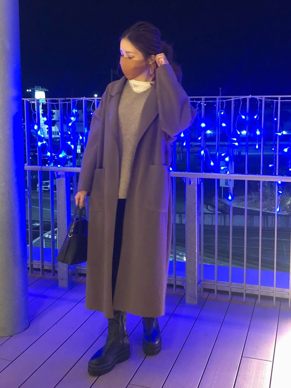 ご覧頂きありがとうございます😌🤍 年末に買い出し行った時の📸 イルミネーション綺麗ですが 普通の近所のスーパーです😇 ロングコートにロングブーツが マイブーム🥰🤎🤎🤎 マスクも結ぶタイプで 調節出来るのが良いですよね🥰
