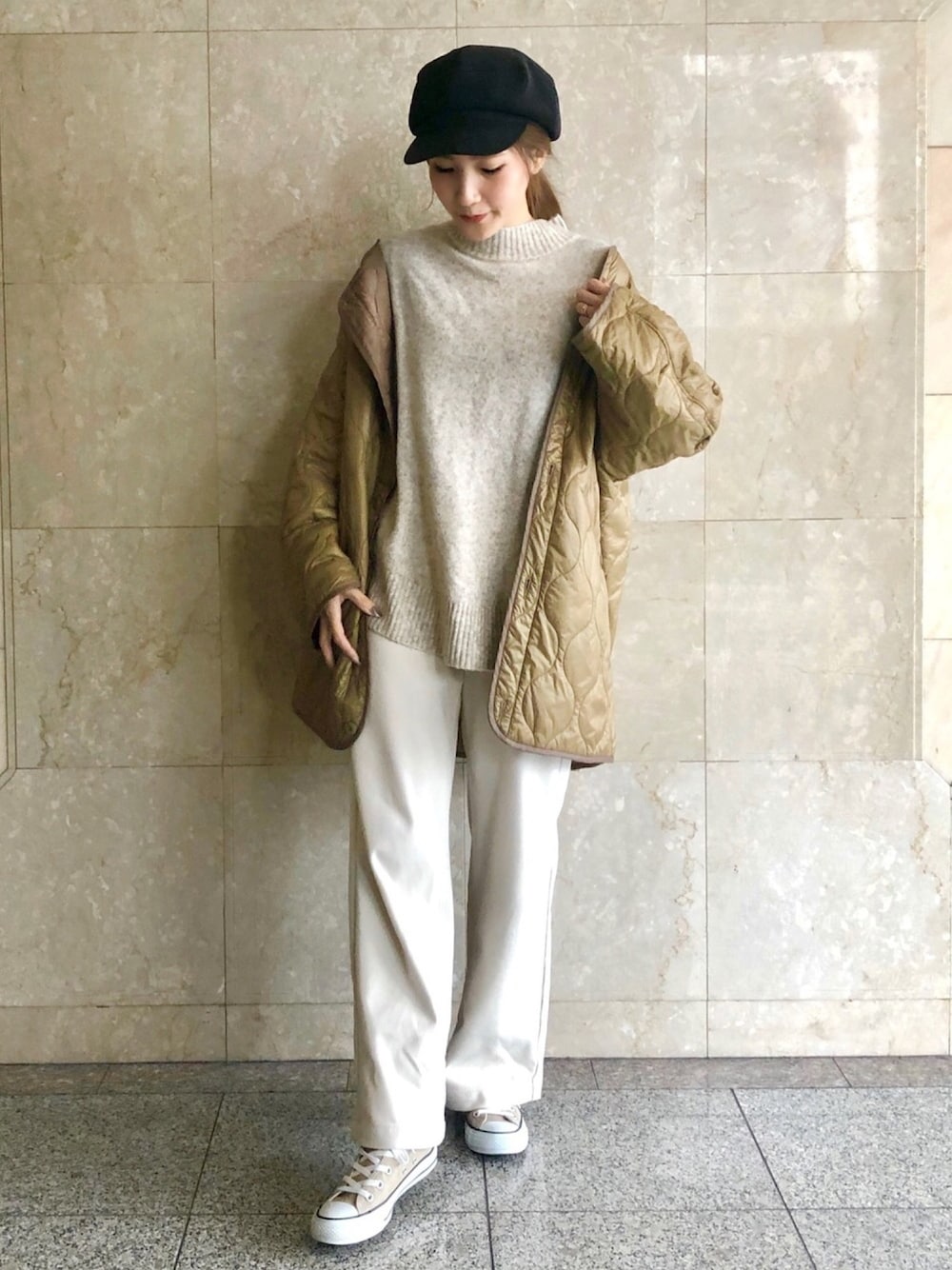 𝒉𝒊𝒓𝒐のノーカラージャケット「【WEB限定】M65ライナーキルトコート(キルティングジャケット・ノーカラーコート)」を使ったコーディネート