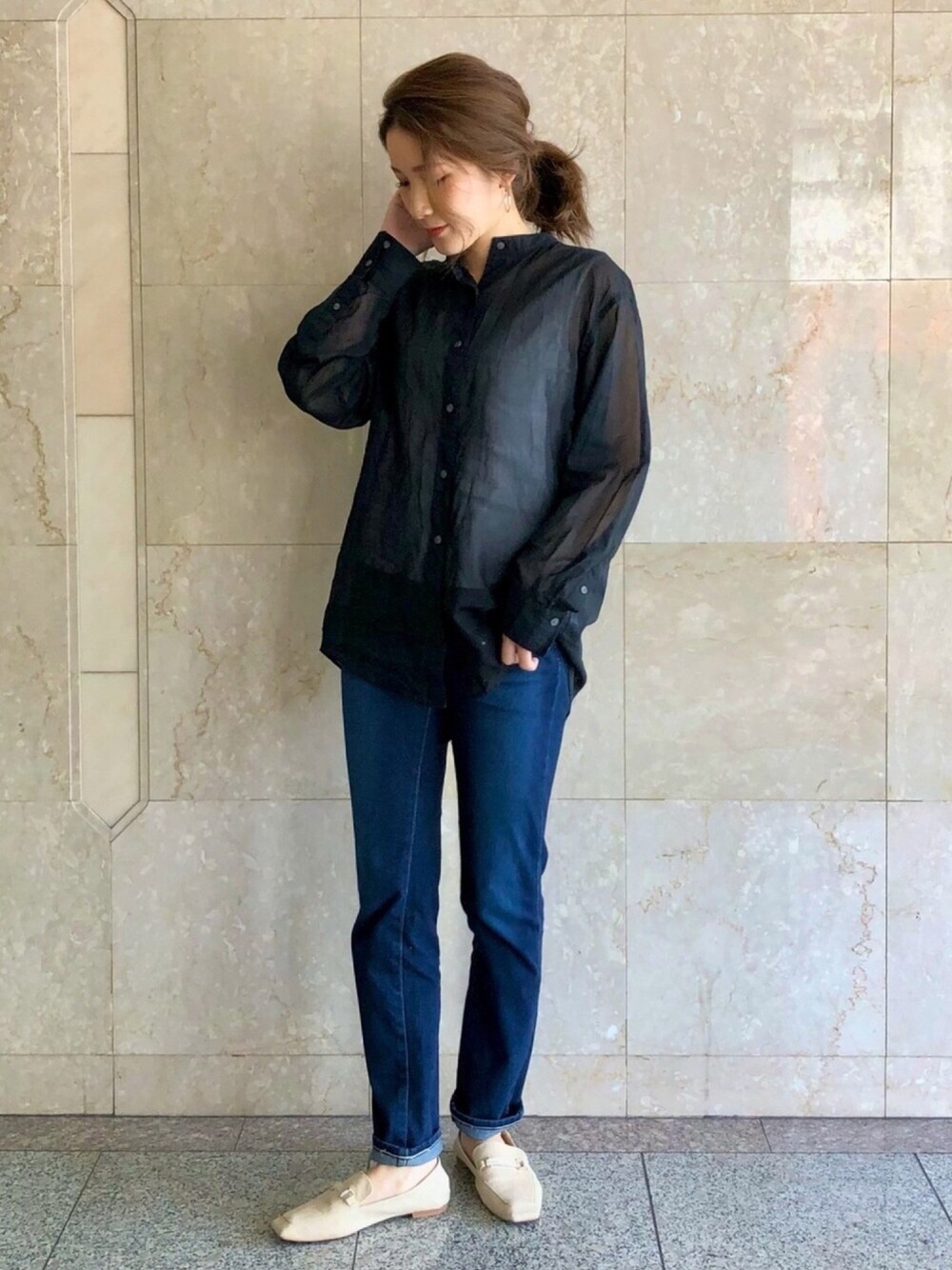 ご覧頂きありがとうございます☺️💓 UNIQLOブラックシアーシャツ ヘビロテ中🖤🖤🖤 ちゃんとキレイめに見える、 実はラクちんコーデ🙋♀️✨✨ デニムは 【CLASSY. 4月号/CanCam 5月号掲載】EDWIN LADIES ジャージーズ 👖
