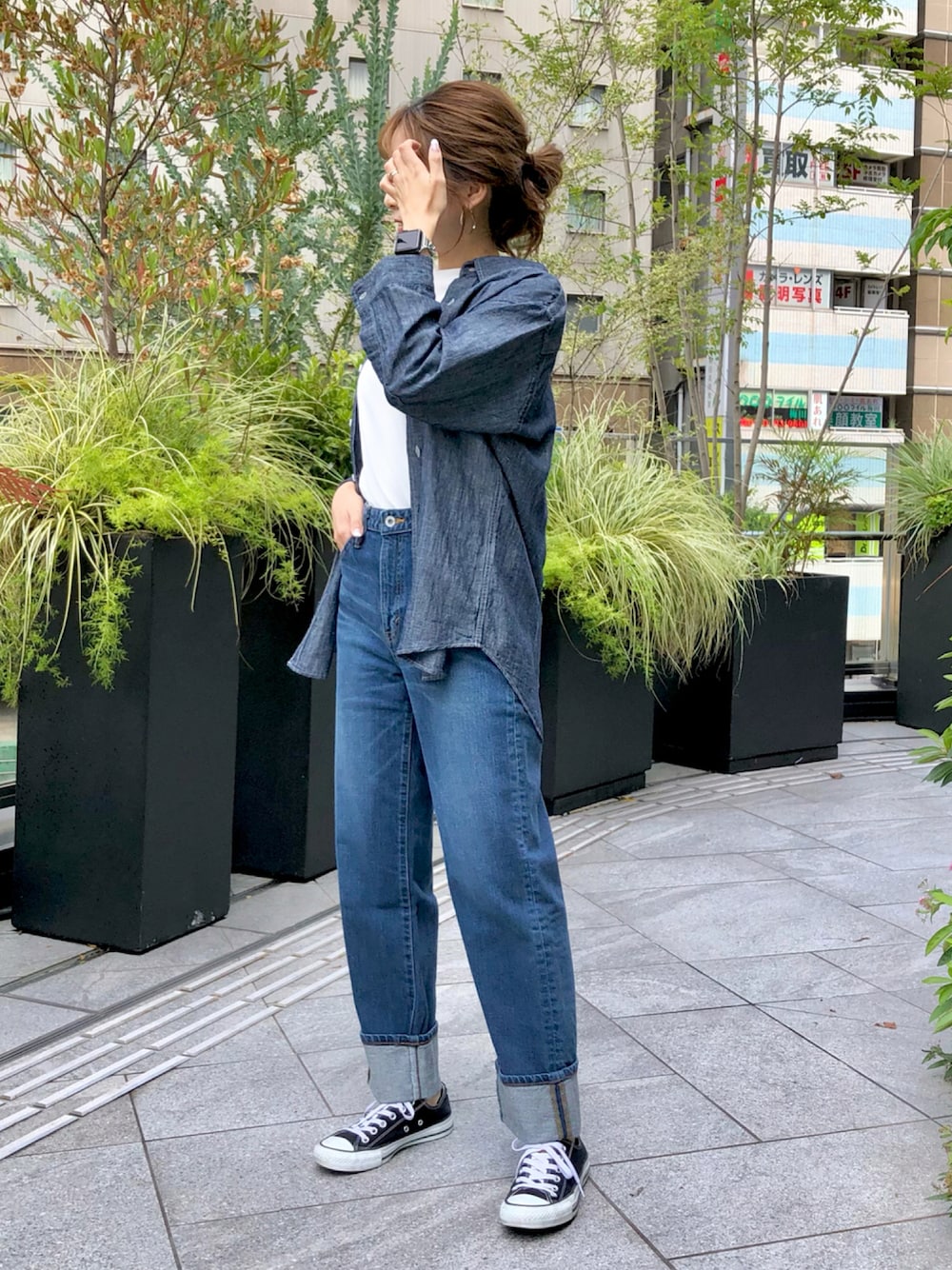 ご覧頂きありがとうございます☺️🌼 デニムカジュアル👖🤍 薄手の羽織りは 冷房対策で夏でも大活躍ですよね🧏🏻♀️✨ ボトムはゆるっと穿くため 普段よりワンサイズ落として 穿いてます🙆♀️