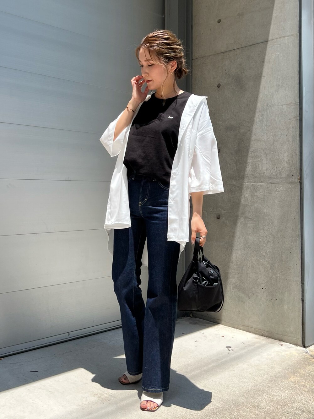 ご覧頂きありがとうございます🫶🏻 メンズのキレイめシャツで 大人女子コーデ🙋♀️ フレアデニムはやっぱり 美脚効果抜群ですね🙌 最強です🤍