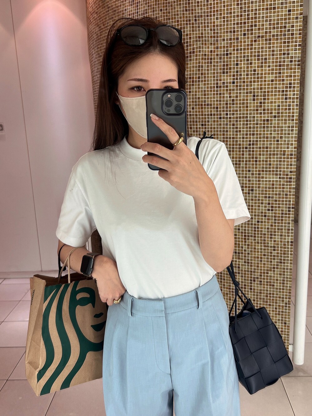 メンテナンスday🙌 気がつけば全身UNIQLOな日😇🤍 スラックスのくすみブルーがお気に入り🩵