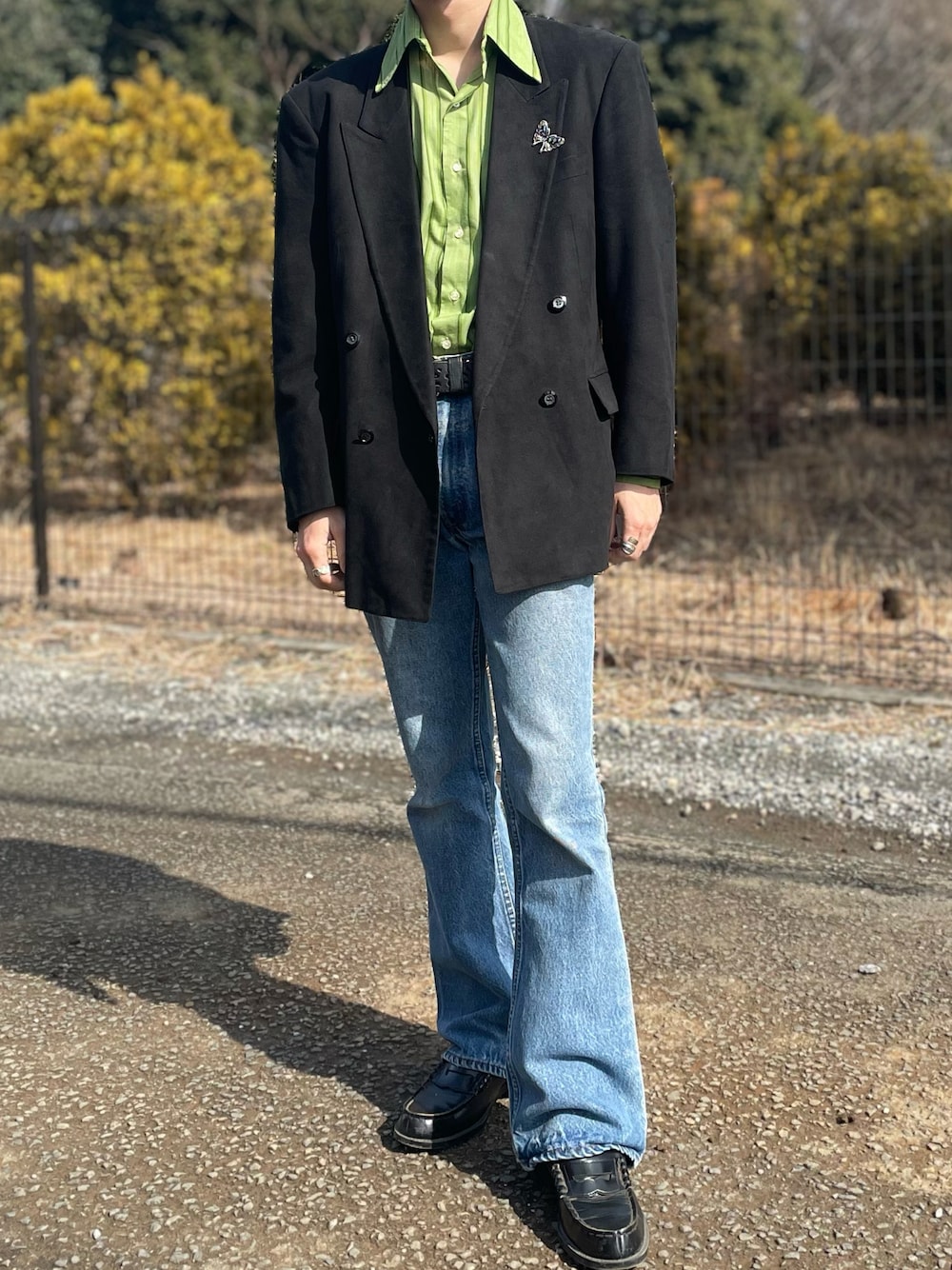 Kのデニムパンツを使ったコーディネート