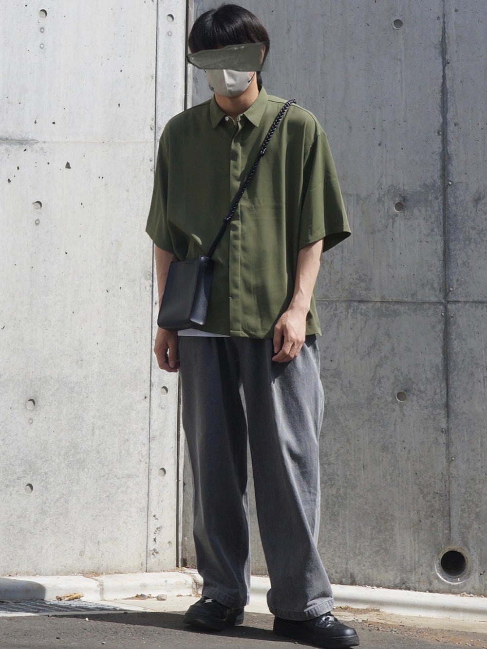 ひろのシャツ/ブラウス「綾トロミ オーバーサイズ比翼S/Sシャツ」を使ったコーディネート