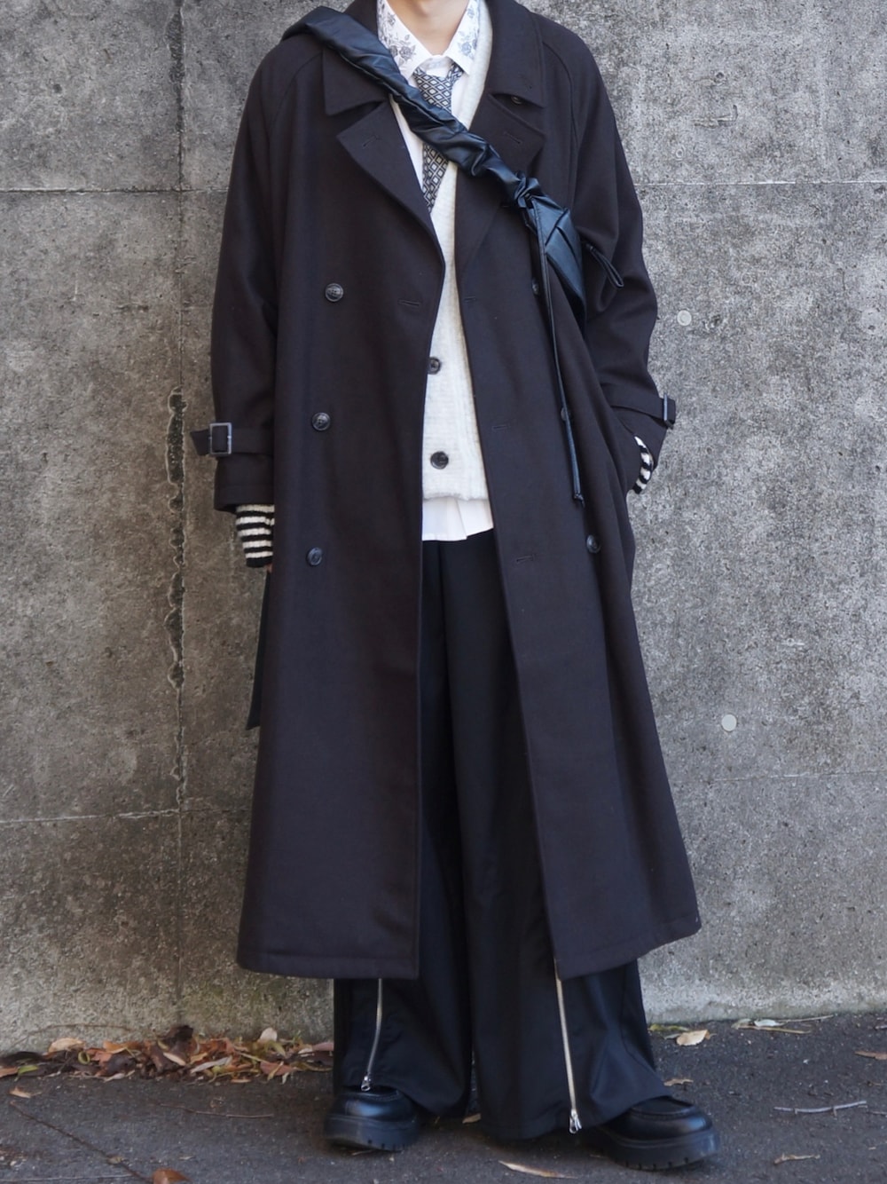 ひろのステンカラーコート「Wool melton over coat/ウールメルトンオーバーコート」を使ったコーディネート