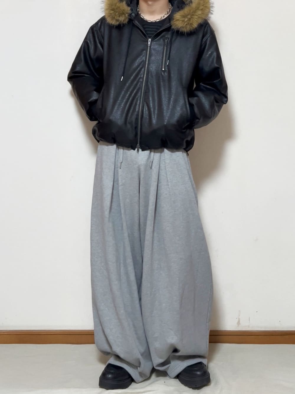 ひろのブルゾン「【Alfred Alex】2WAYヴィンテージライクオーバーサイズファーフードブルゾン」を使ったコーディネート