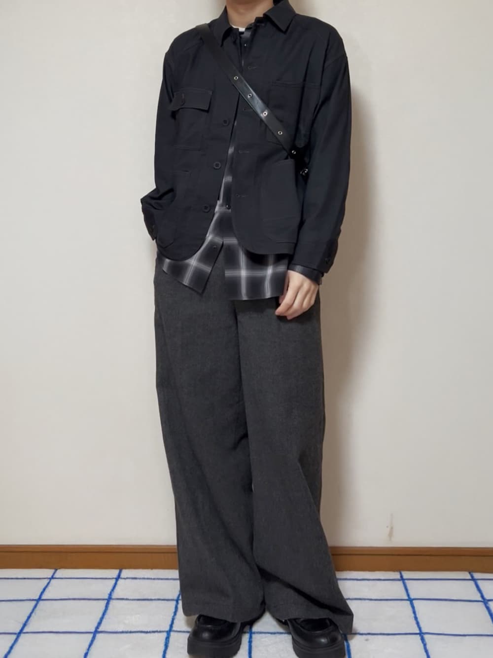 ひろのスラックス「【セットアップ対応】テックツイード ディープタック センタークリース セミフレアパンツ」を使ったコーディネート