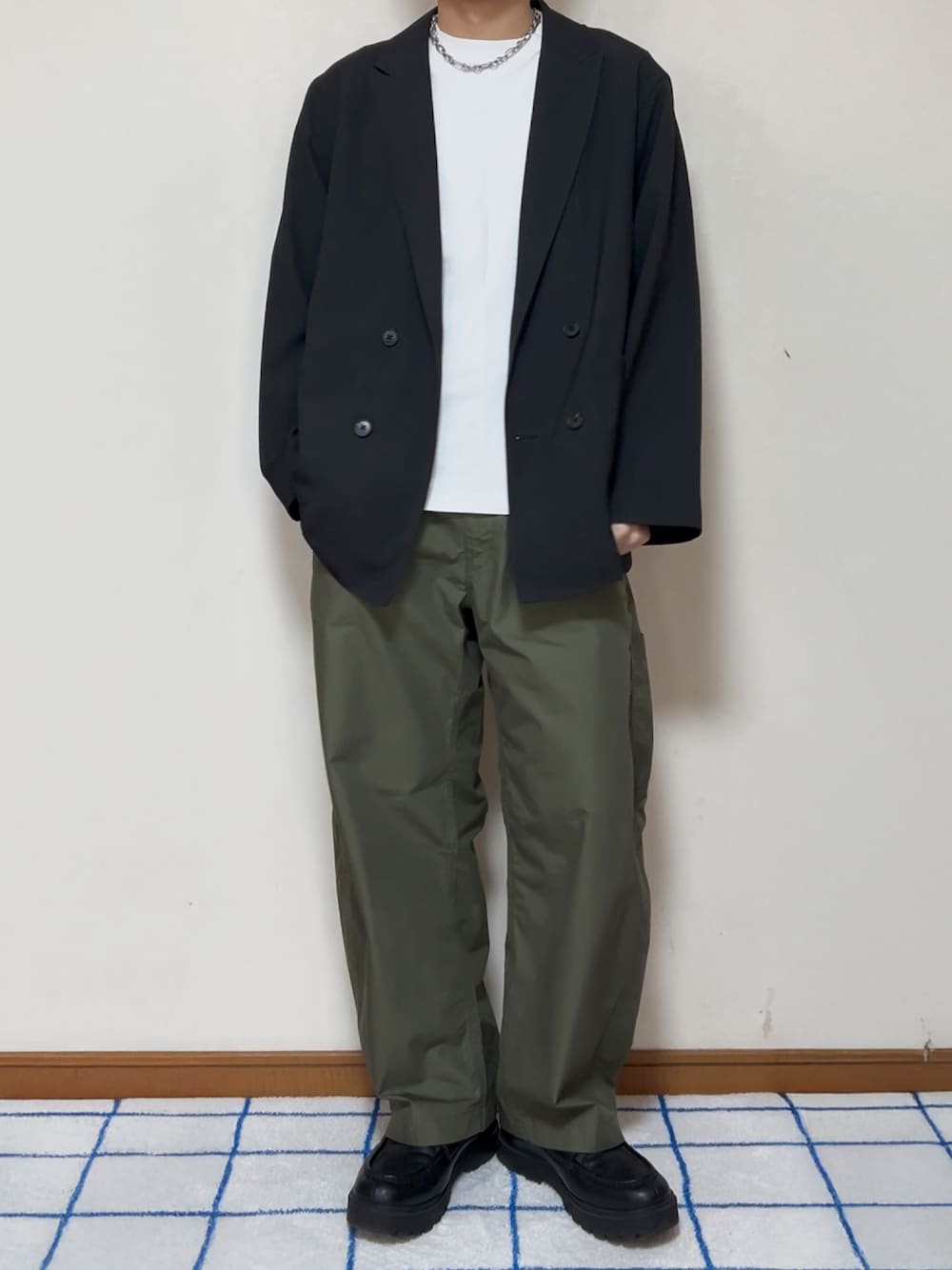 ひろのテーラードジャケット「【Alfred Alex】ウールライク ルーズシルエット ダブルテーラードジャケット【セットアップ対応】」を使ったコーディネート