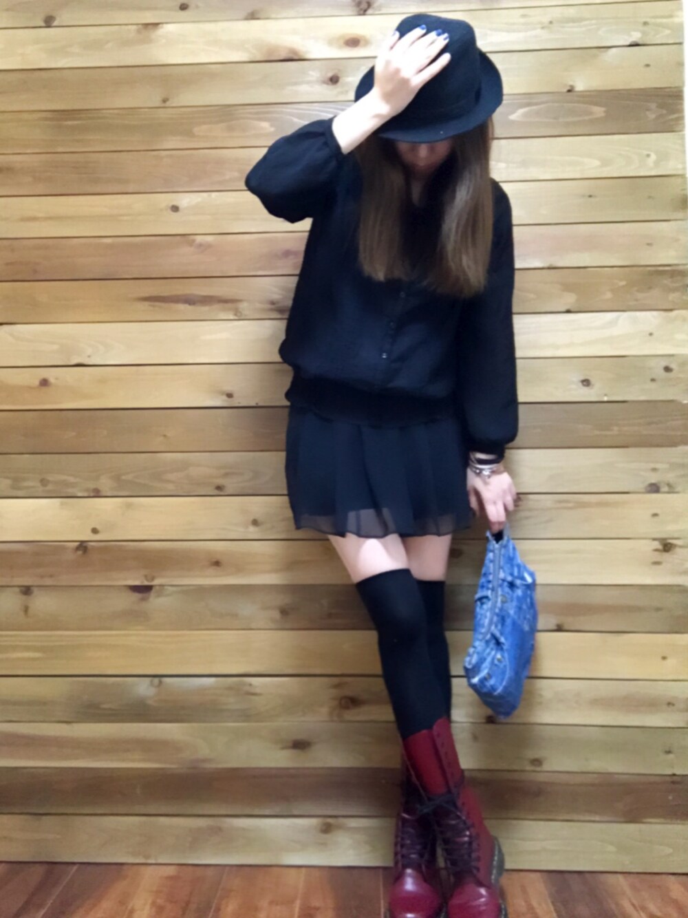 オールブラックに赤ブーツを合わせてハード目にしてみました♬