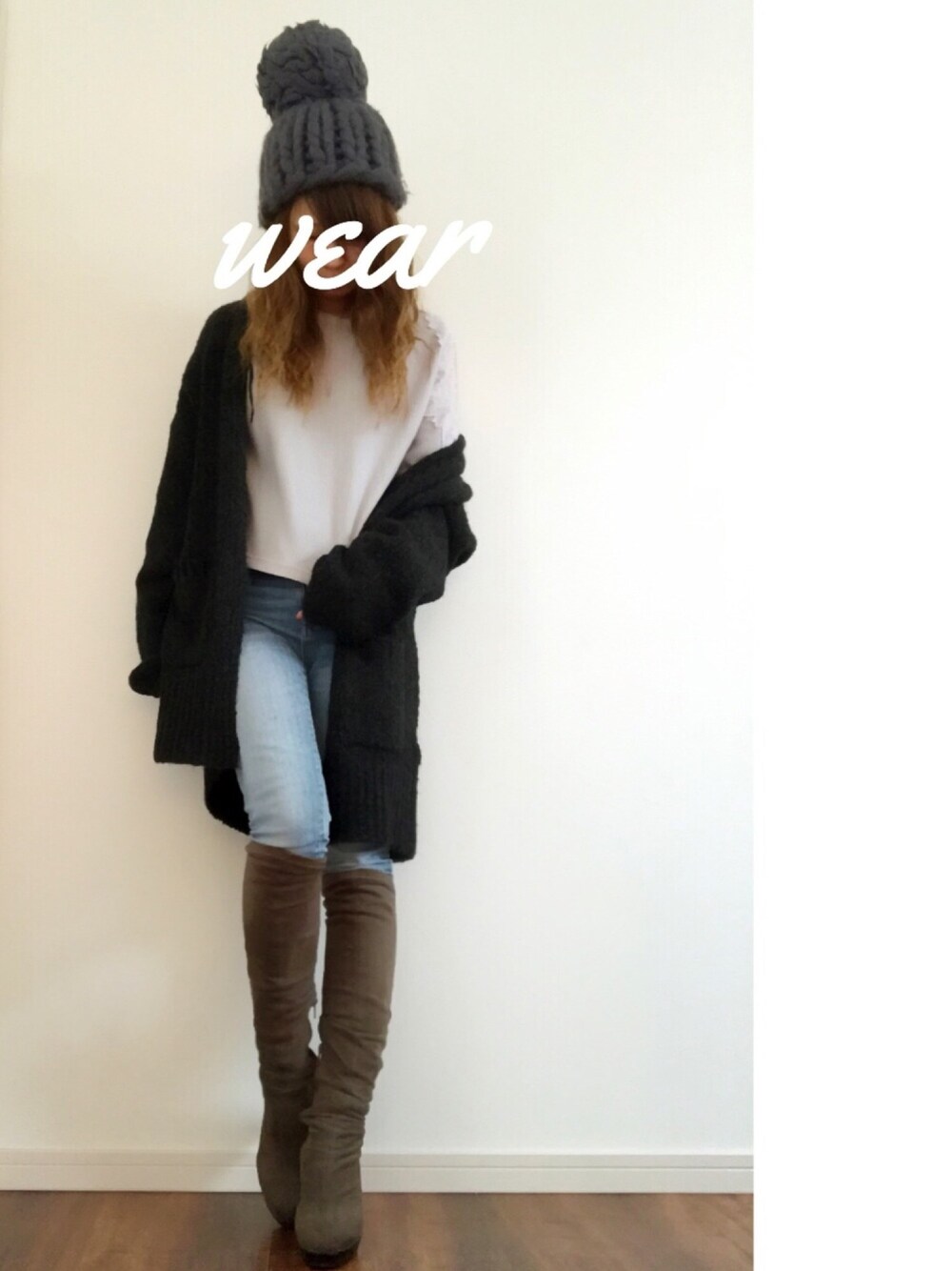 今日は雪が多いのでゆるゆる冬コーデ。 お気に入りのニット帽と大好きなカーディガンでカジュアルに冬らしく♬ 寒いです。 皆さんのお住まいは雪が降ってますか?