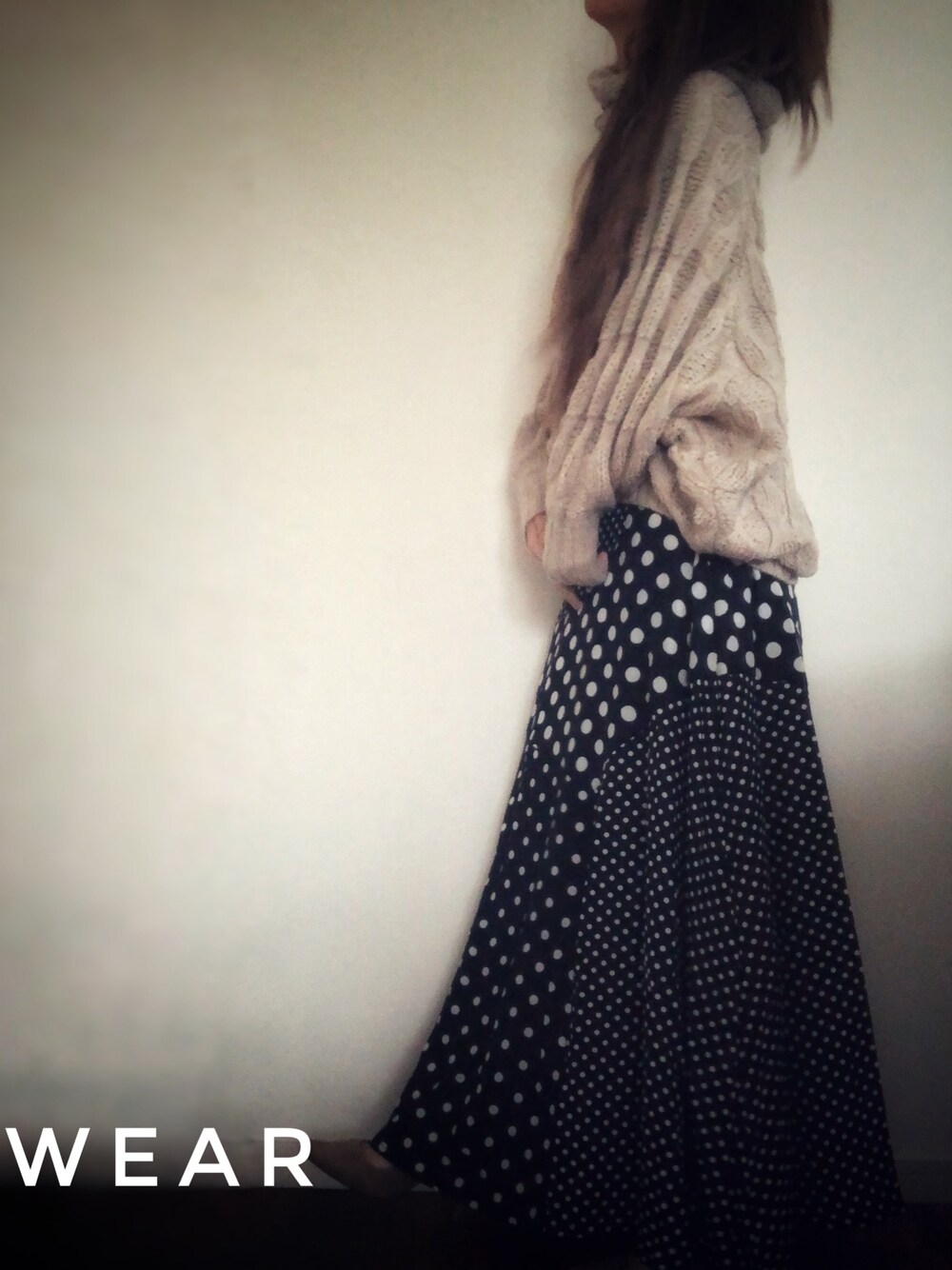 Takumi.cのスカート「ドット柄切替ロングスカート」を使ったコーディネート