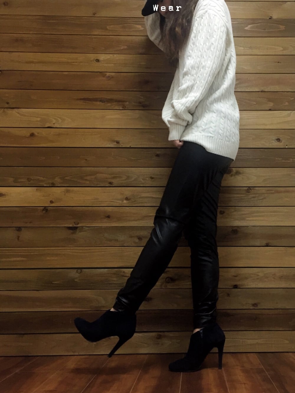 大好きなメンズニットをレザーもパンツでハードに♬ 最近ハード系を着崩すの好きです。
