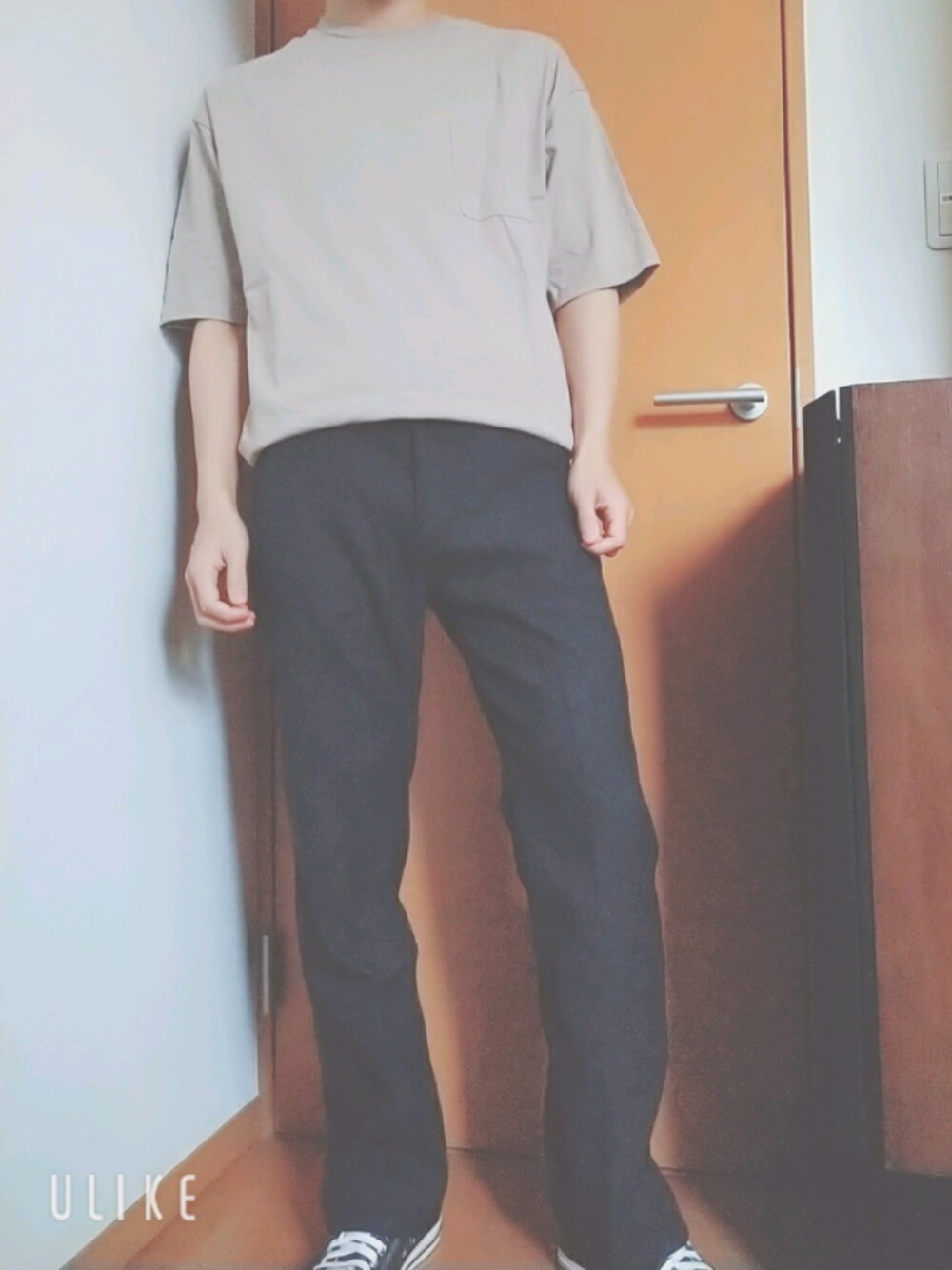 Tシャツをタックインしてます。 脚長効果、スタイル補正。