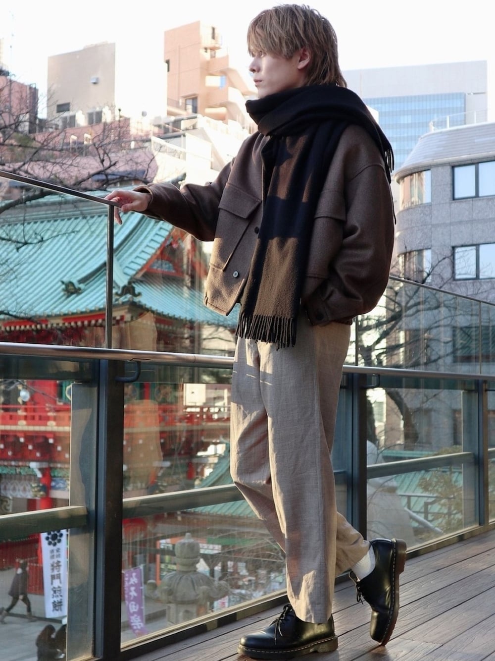 ひろきのマフラー「ACNE STUDIOS CANADA CASH カシミヤマフラー」を使ったコーディネート