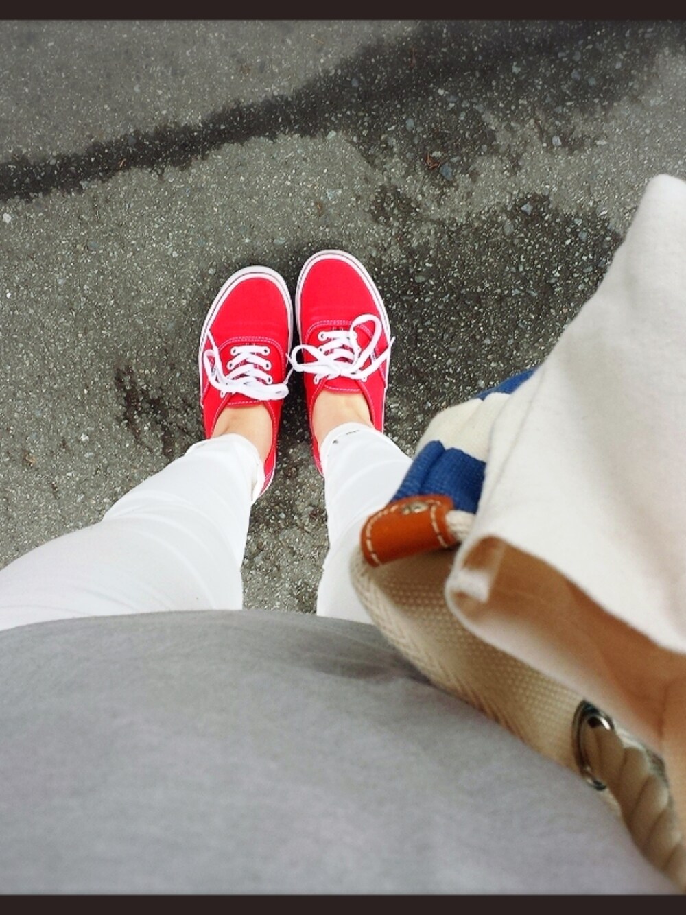トップス、、UR パンツ、、ベルメゾン シューズ、、VANS かばん、、bonfanti イヤリング、、雑貨屋 ヘアは巻いてポニーテール◎