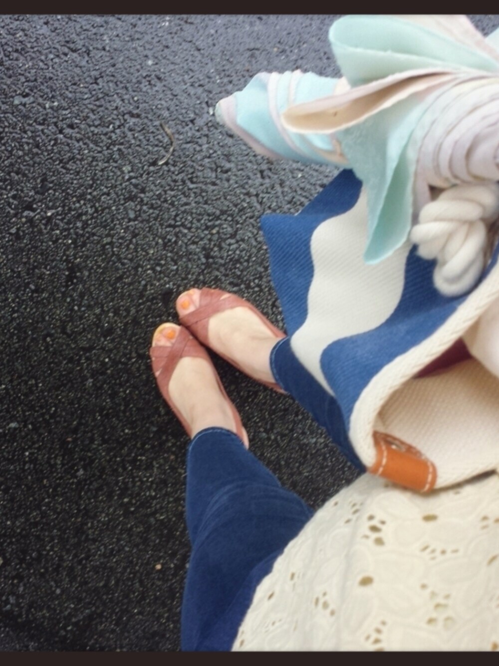 ブラウス、、Maybook ハイウエストパンツ、、ローリーズファーム サンダル、、SHIPS かばんは昨日と一緒◎ 髪の毛広がる~( ´-` )