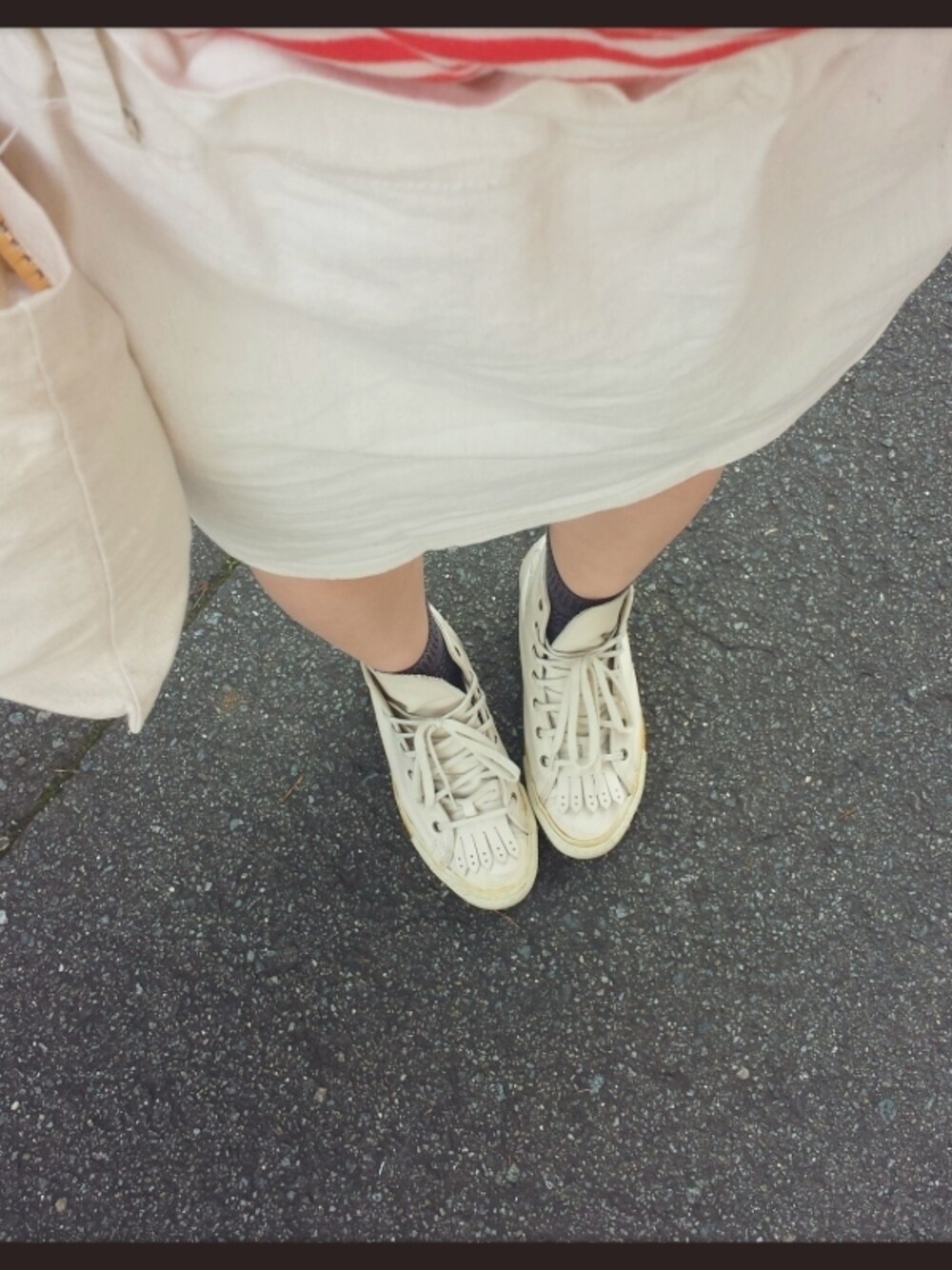 トップス、、ヘザー スカート、、レイカズン スニーカー、、コンバース イヤリング、、mellow ピクニックピクニック るん