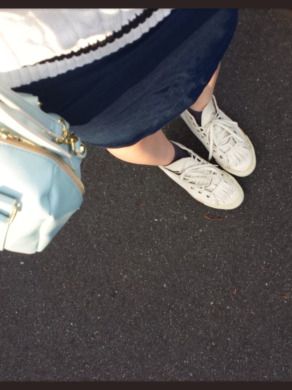 ノースリーブニット、、アパートバイローリーズ タイトスカート、、ローリーズファーム スニーカー、、コンバース かばん、、忘れた 今日は撮影ー! 始発でむかってます◎ よく寝たし朝日が気持ちいい(*´-`*)